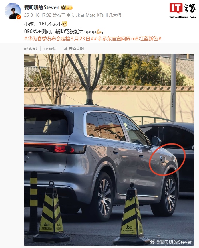 博主 @爱叨叨的Steven 接着透露,该车“小改但也不太小”,除了侧向高精度固态激光雷达外,还将搭载华为乾崑全球量产最高 896 线激光雷达,辅助驾驶能力提升。